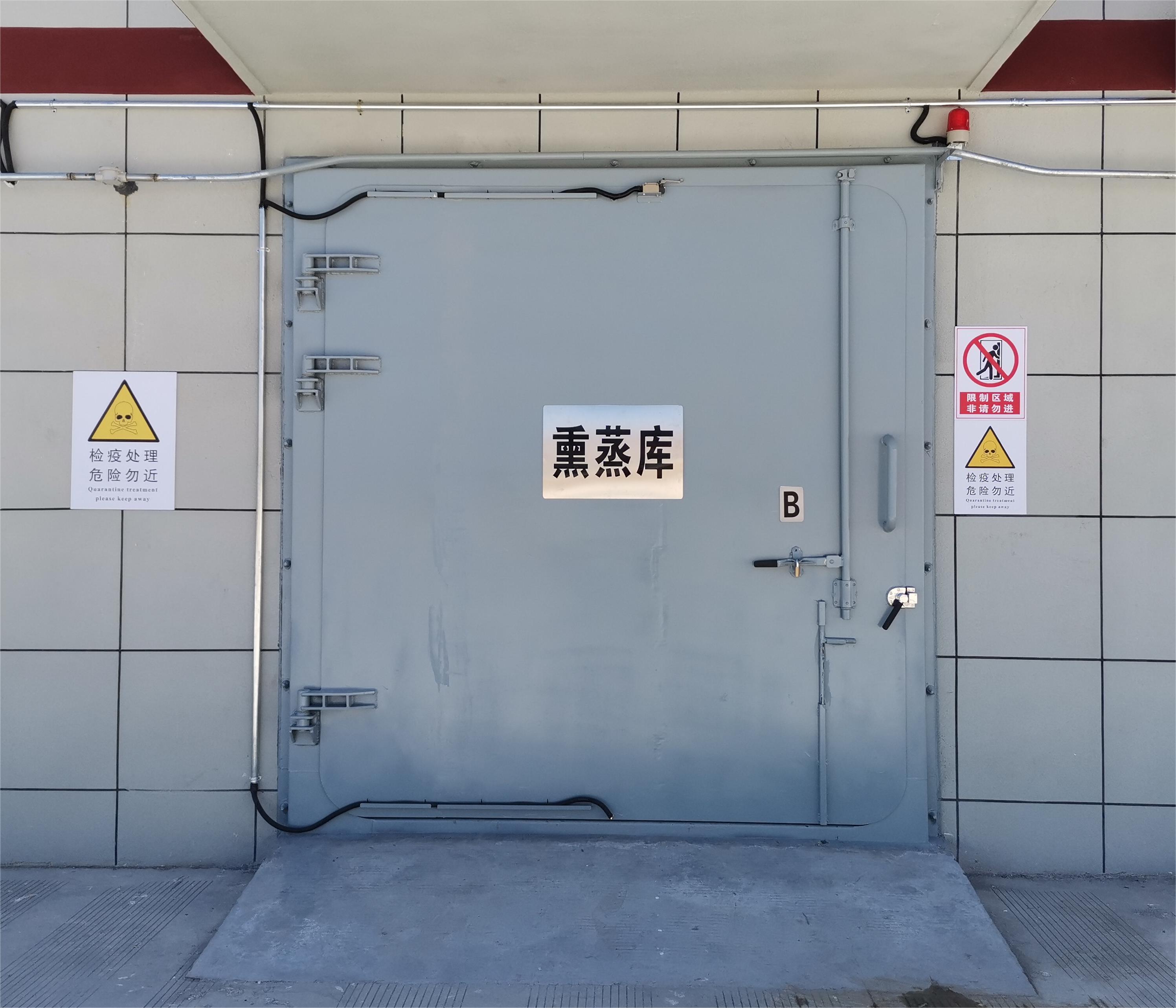 目前在很多场所经常需要对木材、粮食等作物进行熏蒸作业,以防止木材、粮食等产品上感染病虫害。在进行熏蒸作业时,通常是先将木材、粮食等物品堆垛起来,然后通过帐幕或箱体将其进行封闭,接着采用投药器向帐幕或箱体内进行投药。但是现有的熏蒸处理却存在缺陷:集装箱外部凹凸的结构性钢板,表面覆盖保温层比较困难;标准集装箱地板为木板,木板与木板之间在长时间的加压或者减压情况下缝隙逐步增大,影响熏蒸的密闭性能。因此,宜南公司推出了智能化集装箱有害生物检疫除害处理系统。