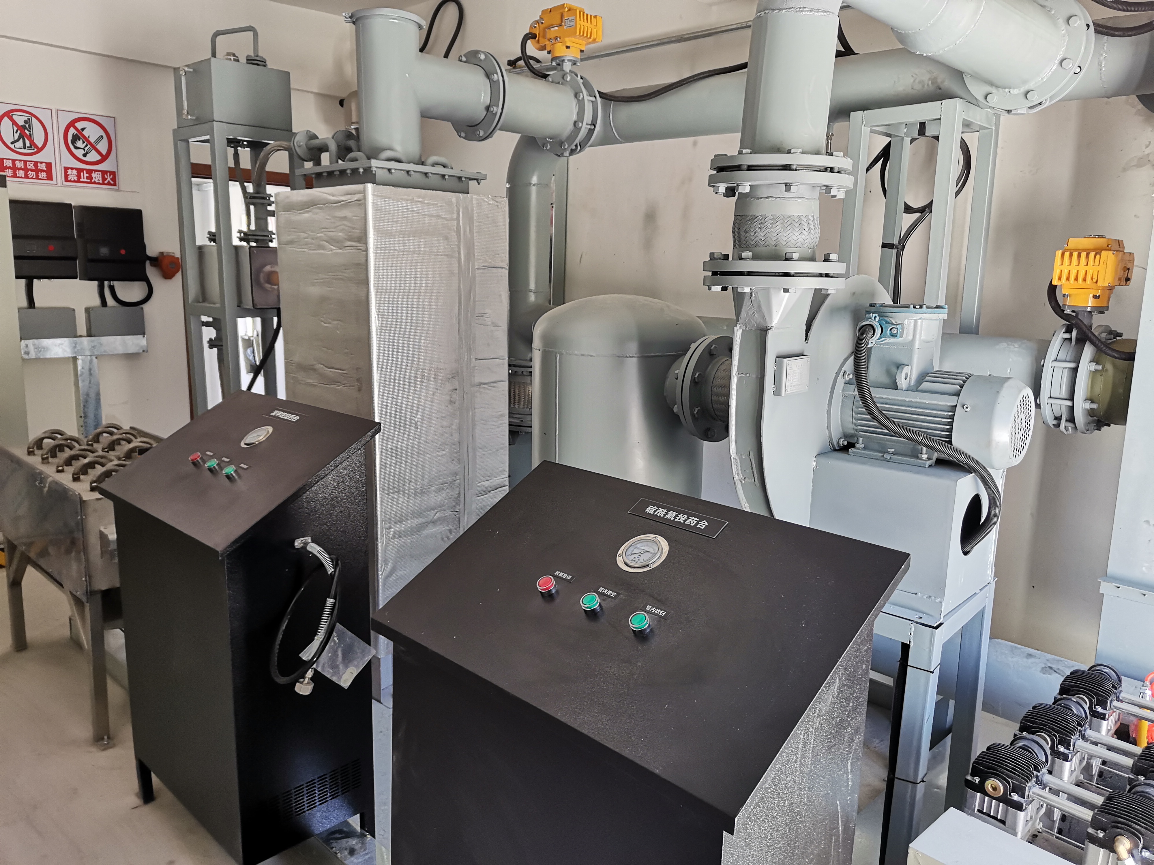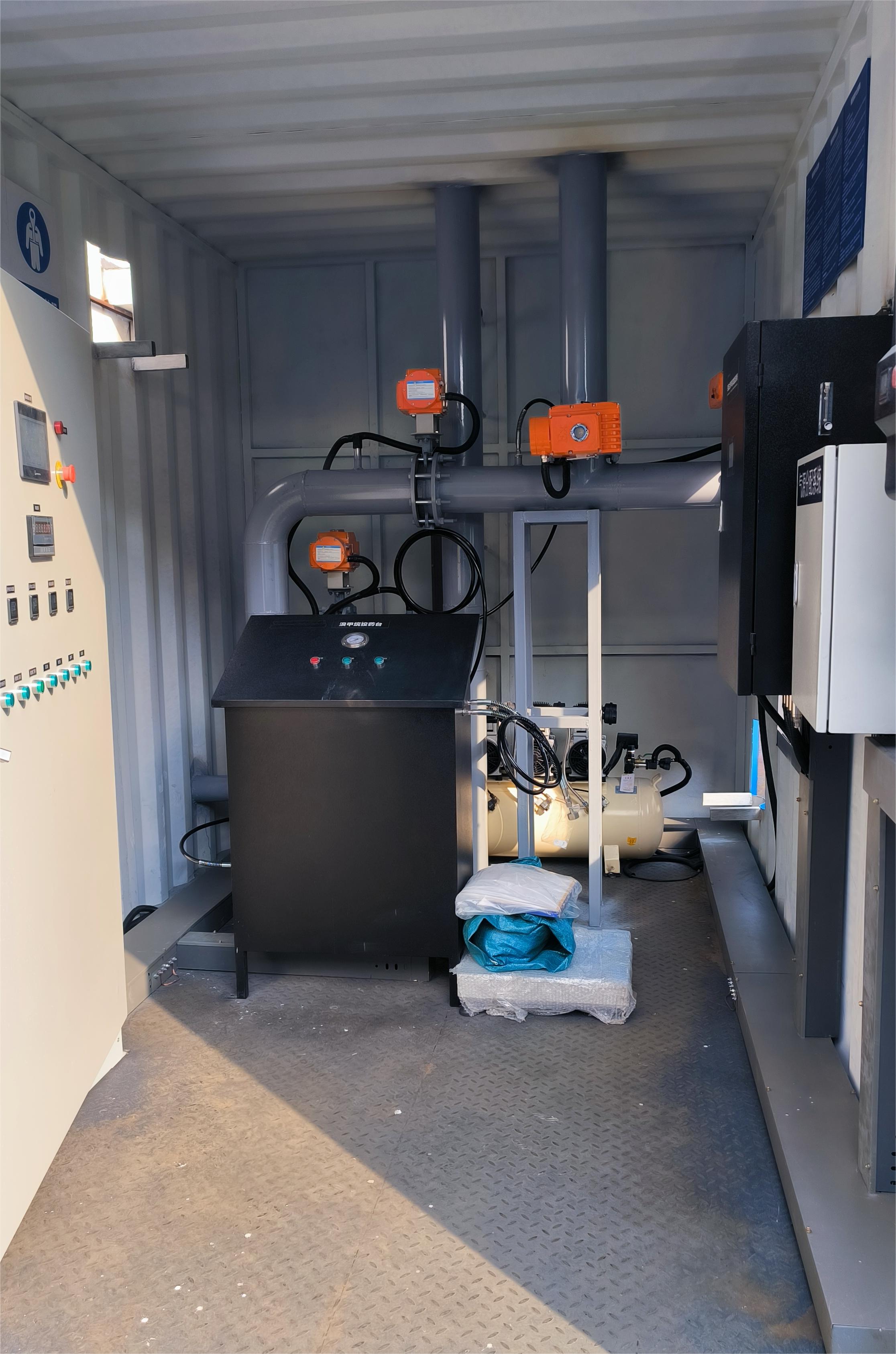 智能化集装箱有害生物检疫除害处理系统由定制型集装箱、加药汽化系统、管道循环系统、加温系统、检测系统、自动化控制系统和设备间通风系统组成。在进行熏蒸时,只需将要熏蒸的物品放置在熏蒸间内即可进行熏蒸,方便使用。该系统设置有专门的金属箱体,与传统熏蒸库比较,结构坚固,可以实现负压熏蒸功能;在熏蒸除害处理过程中,密闭性能更加好;可以通过车辆进行移动,可以依据需要放置于任何适合的地点;且高度智能化,实现熏蒸操作与熏蒸检测高度融合,提高处理效率。
